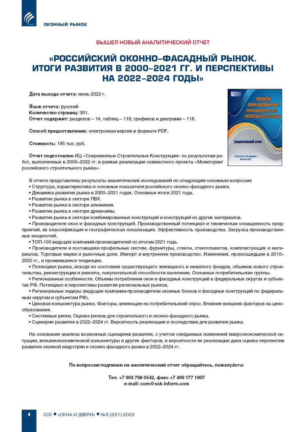 Вышел новый аналитический отчет «Российский оконно-фасадный рынок. Итоги развития в 2000-2021 гг. и перспективы на 2022-2024 годы»