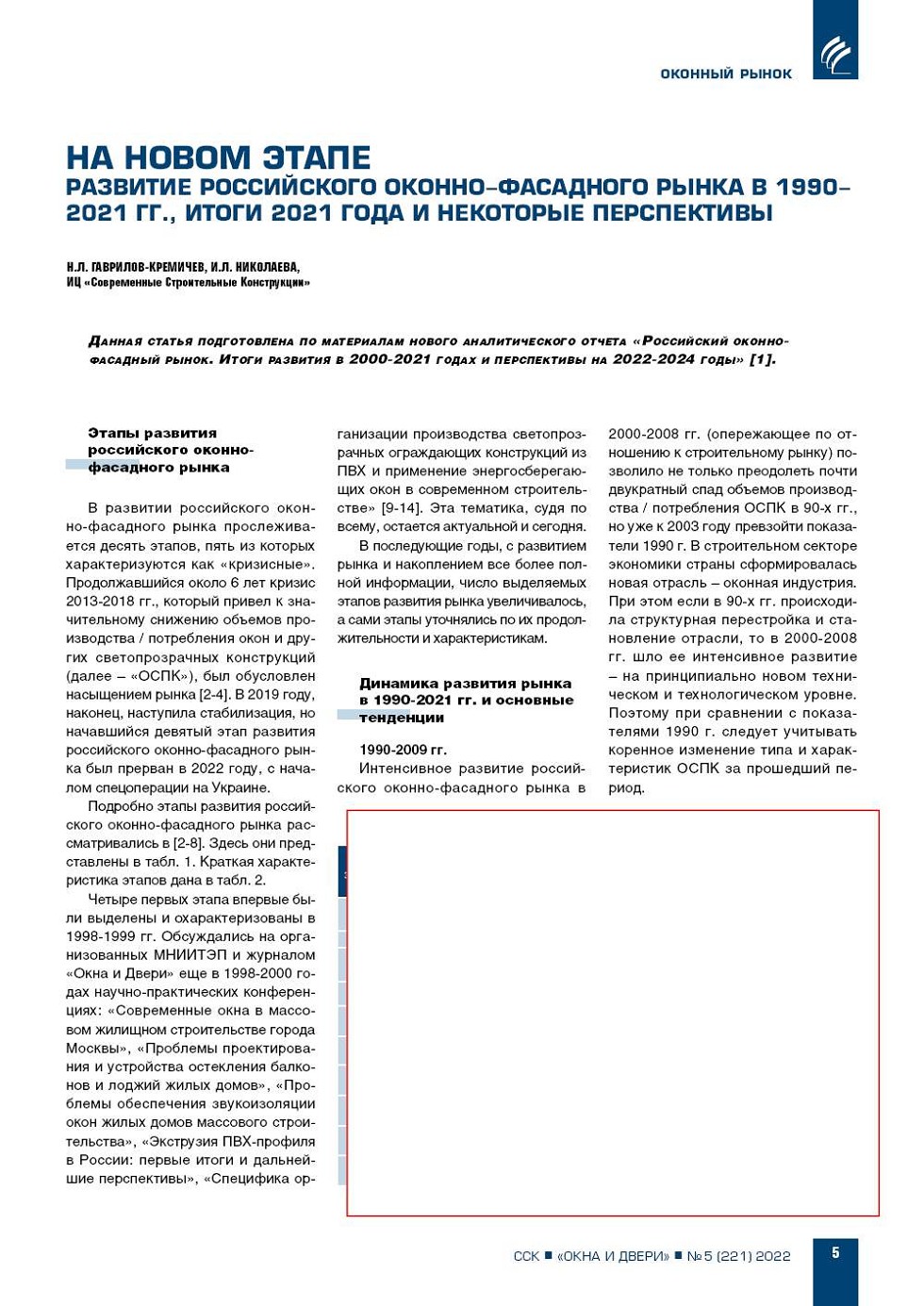 Н.Л. Гаврилов-Кремичев, И.Л. Николаева (ИЦ «ССК»). На новом этапе. Развитие российского оконно-фасадного рынка в 1990-2021 гг., итоги 2021 года и некоторые перспективы