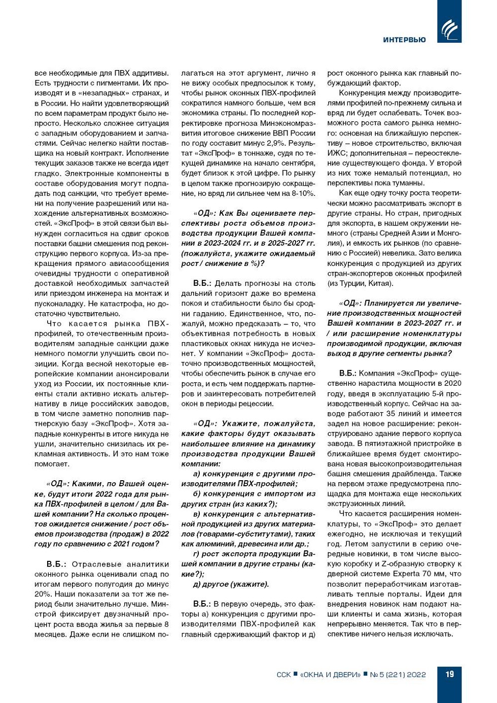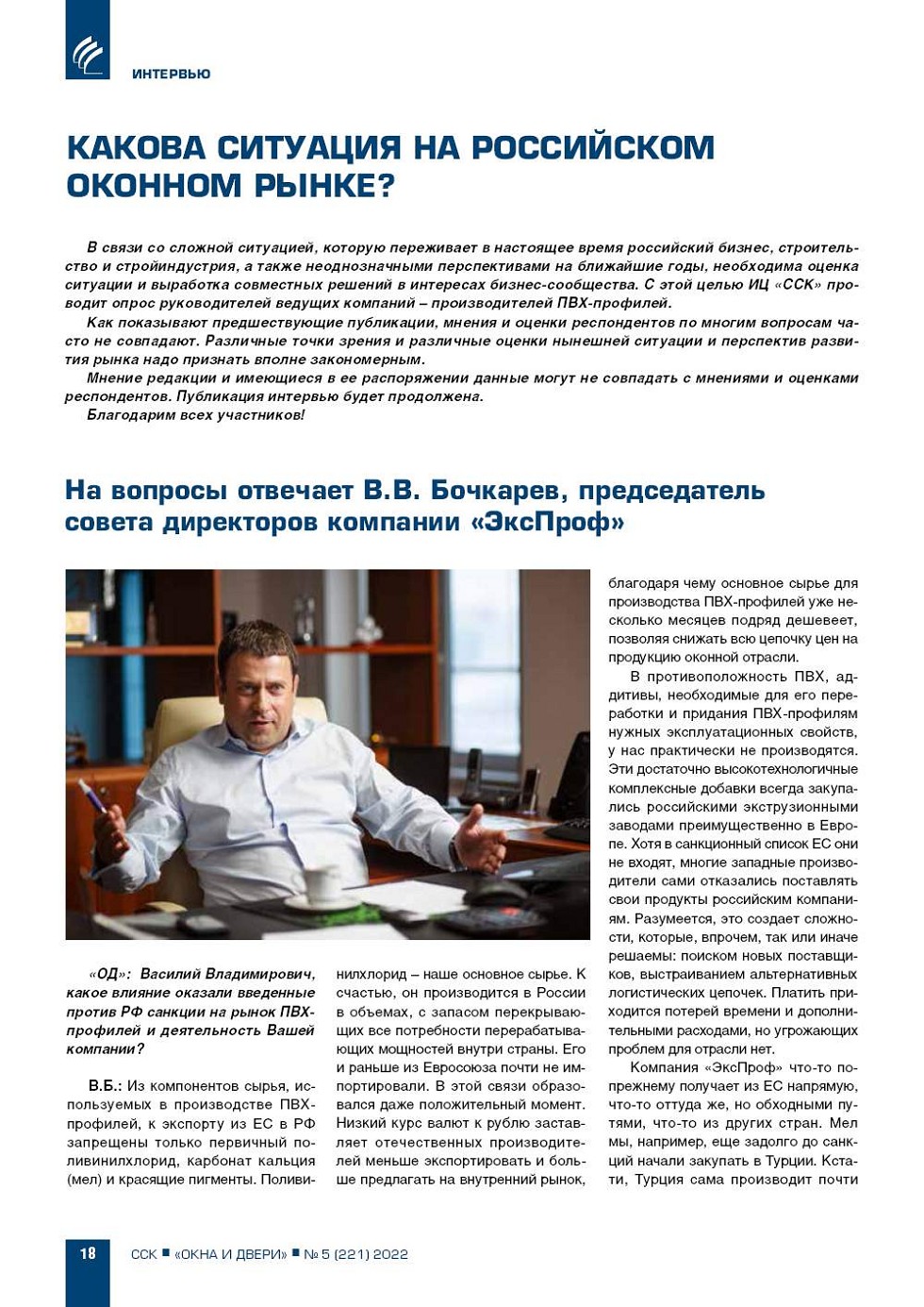 ИНТЕРВЬЮ :: Журнал. Окна и Двери :: Издательство ССК-ИНФОРМ