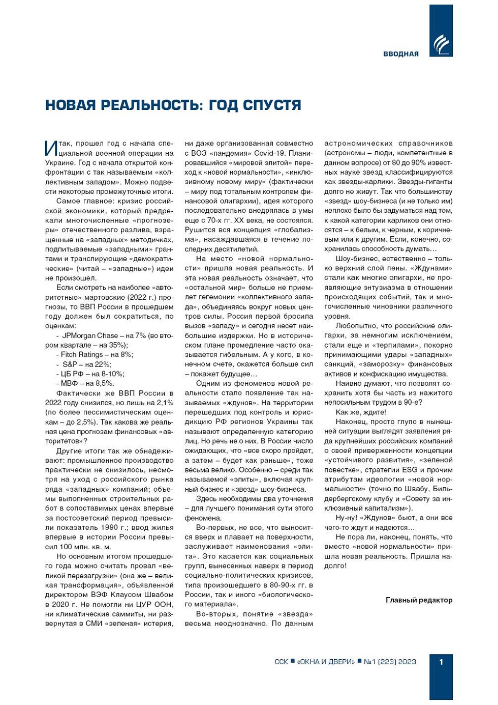 ВЫПУСК «1 (223)», 2023