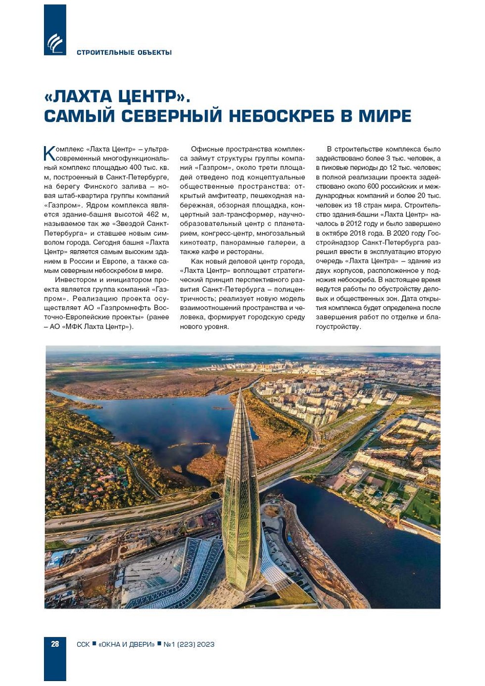 Комплекс «Лахта Центр» – ультрасовременный многофункциональный комплекс площадью 400 тыс. кв. м, построенный в СанктПетербурге, на берегу Финского залива – новая штабквартира группы компаний «Газпром». |