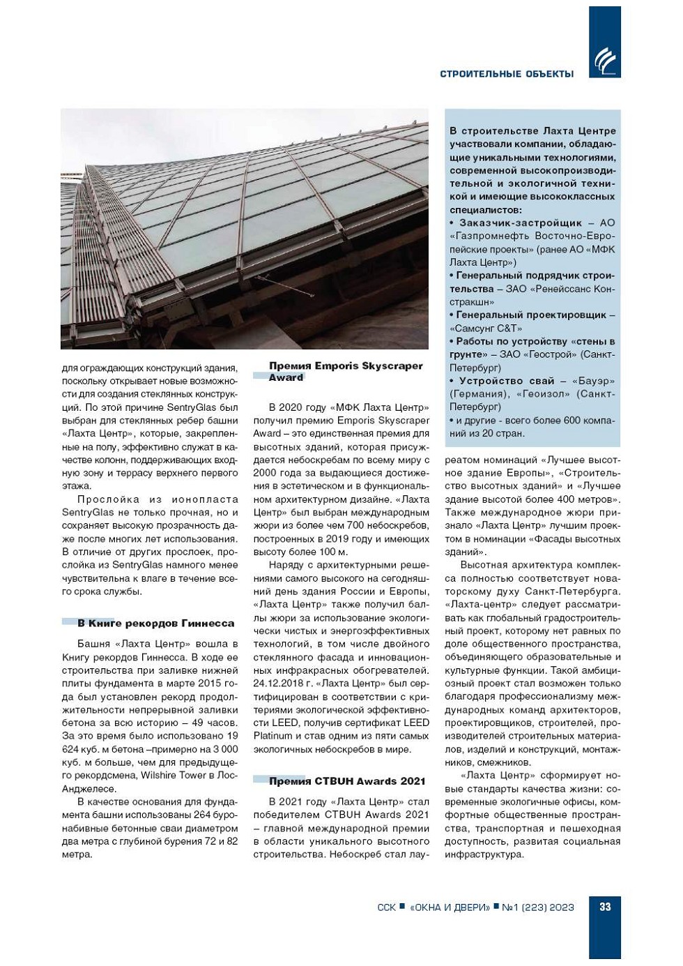 Основные материалы данной статьи были представлены в докладе на V Форуме «Светопрозрачные конструкции. Окна, фасады, двери», прошедшем 01.03.2023 г. в рамках международной выставки «Мир Стекла 2023». |