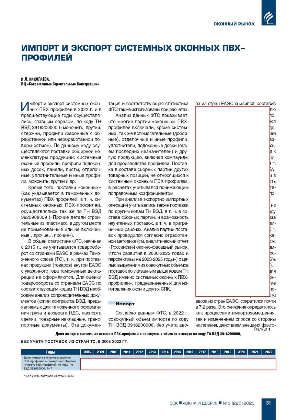Статья подготовлена по материалам аналитического отчета «Российский оконнофасадный рынок. Итоги развития в 20002022 годах и перспективы на 20232025 годы» |