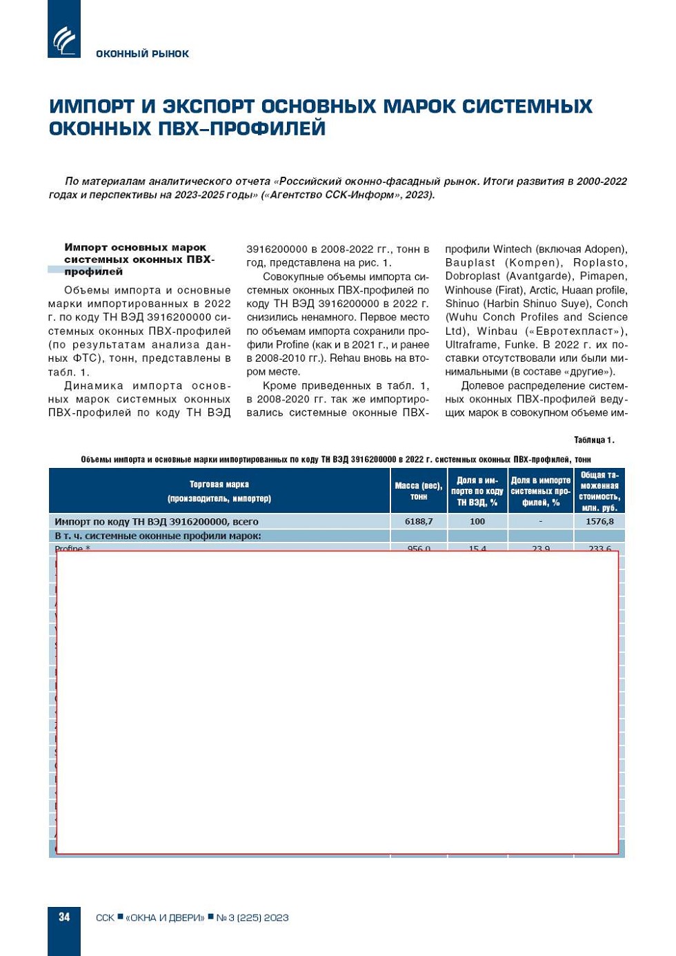 Импорт и экспорт системных оконных ПВХпрофилей в 2022 г. и в предшествующие годы осуществлялись, главным образом, по коду ТН ВЭД 3916200000 («мононить, прутки, стержни, профили фасонные с обработанной или необработанной поверхностью»). |