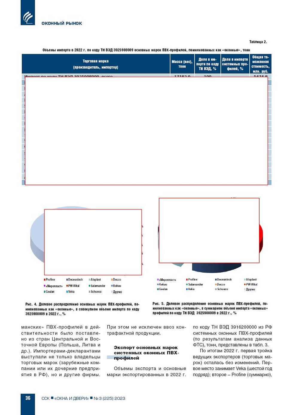 Импорт и экспорт основных марок системных оконных ПВХ-профилей