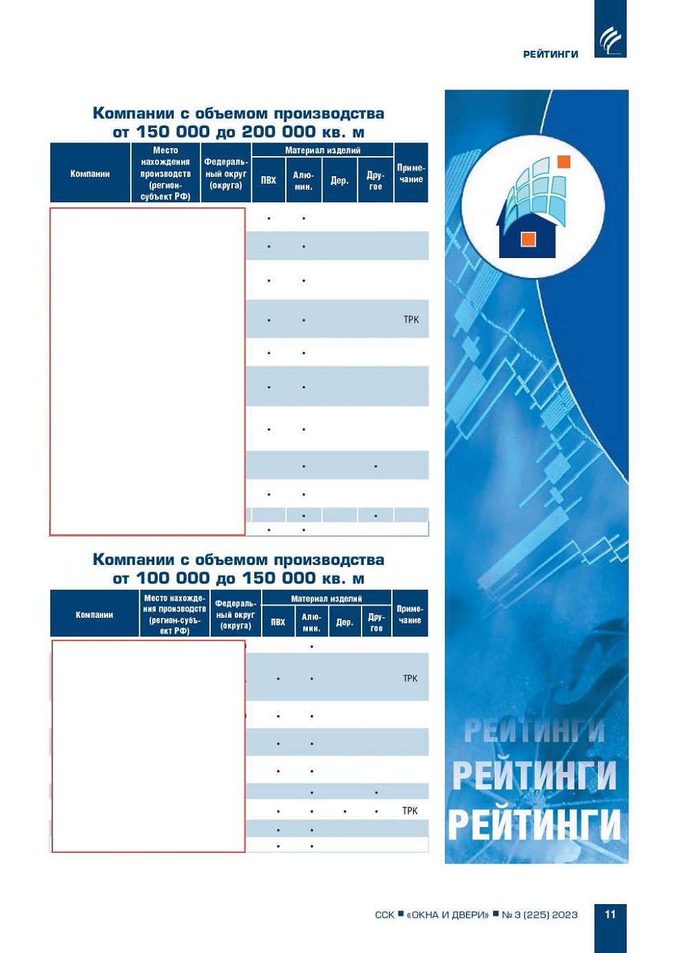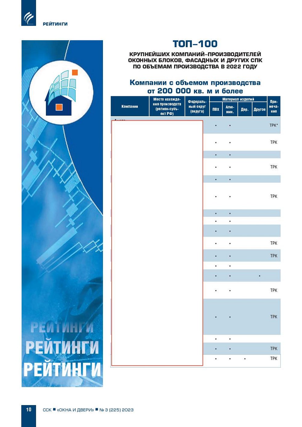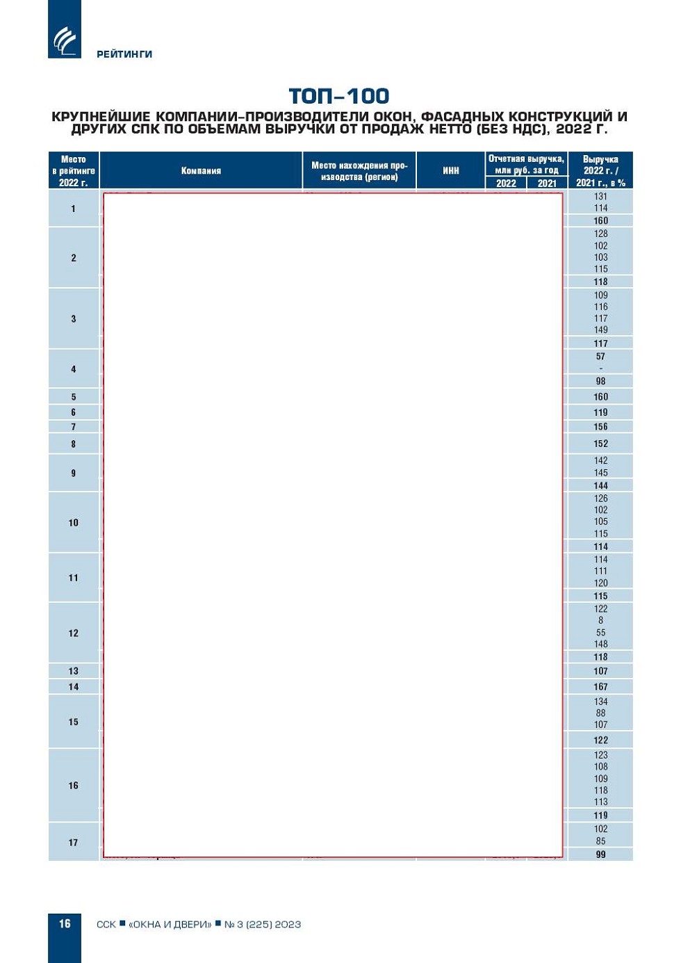 Рейтинг ТОП-100 крупнейших компаний-производителей оконных блоков,