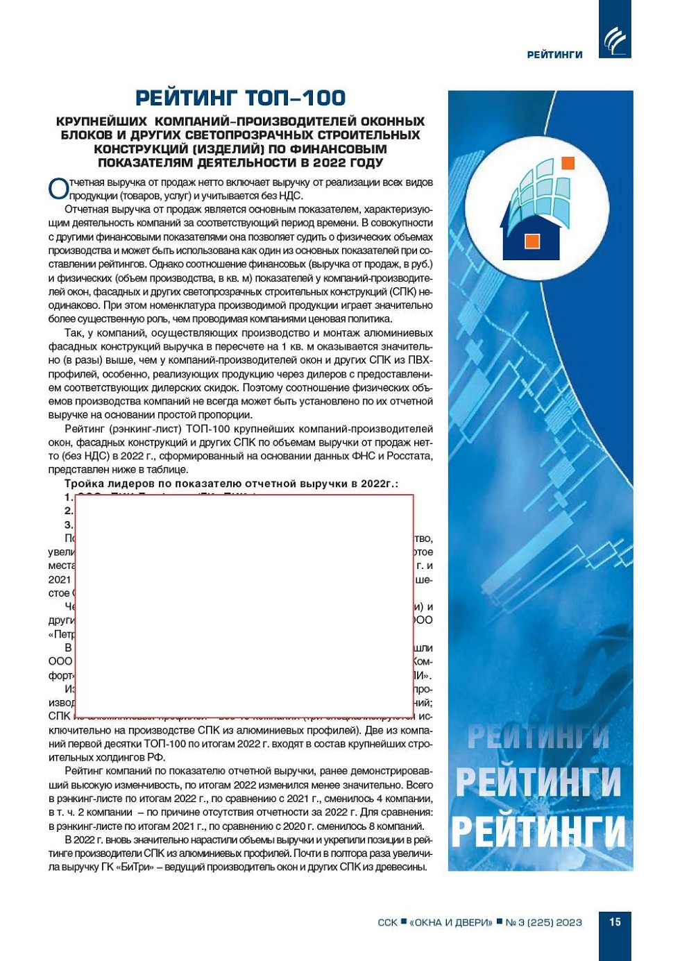 Рейтинг ТОП-100 крупнейших компаний-производителей оконных блоков