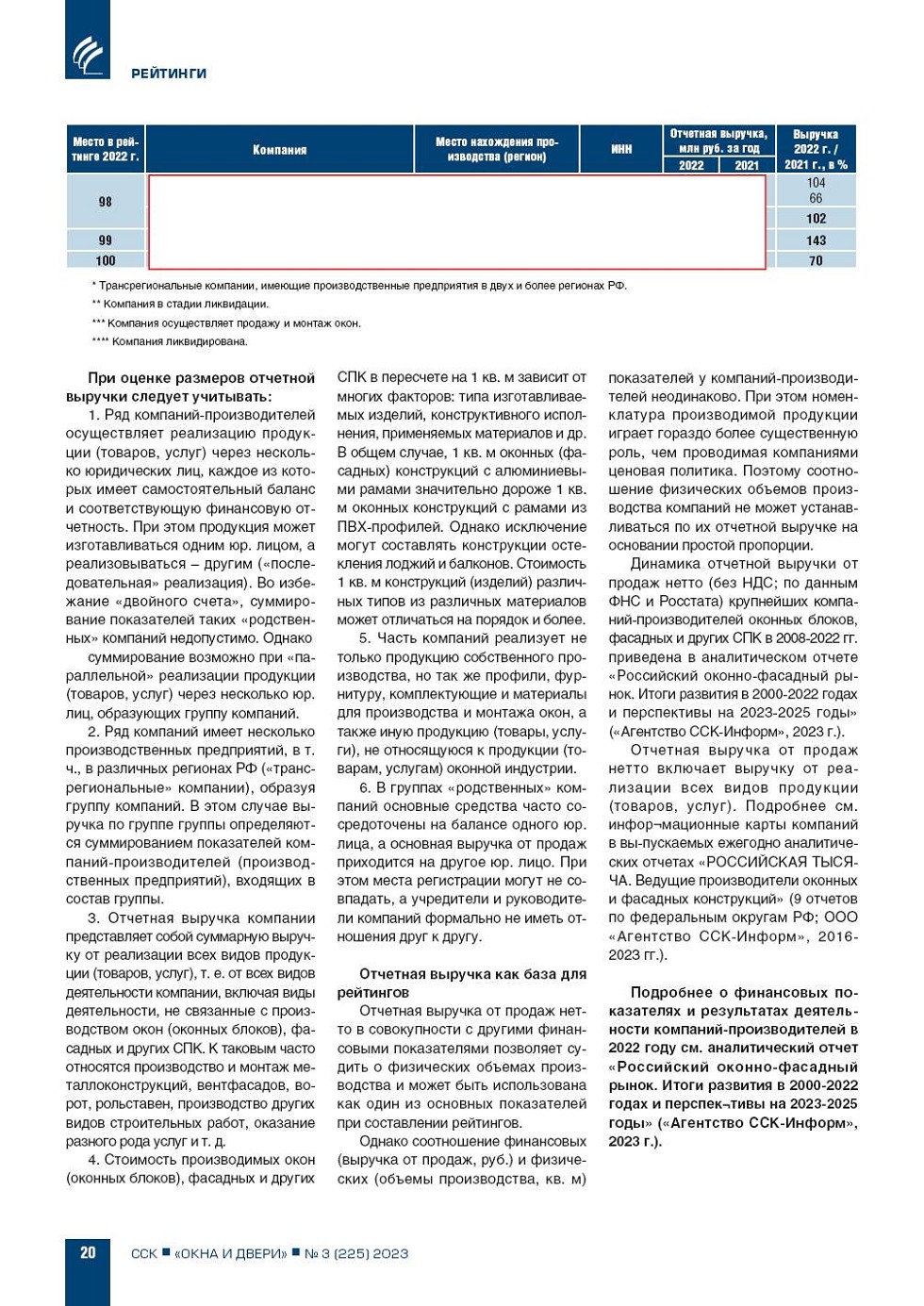 | Суммарная выручка 100 крупнейших компаний-производителей окон и других СПК | ...21 |