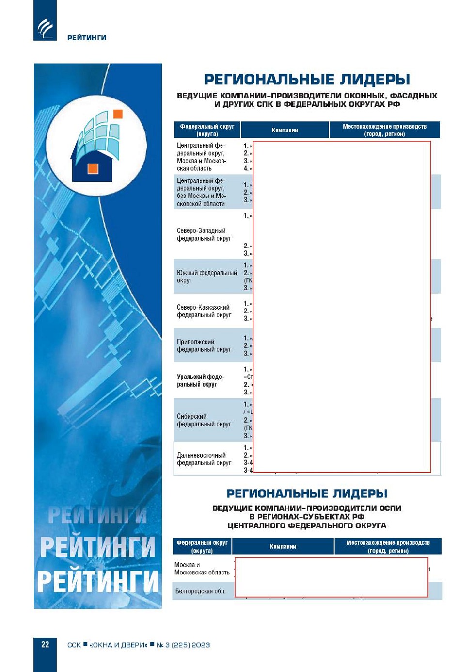 Общее число крупных и крупнейших компанийпроизводителей ОСПИ по итогам 2022 г. составило около 200 (как и в 20202021 гг.). Подробная информация о ведущих (крупнейших, крупных и средних) компанияхпроизводителях оконных блоков, фасадных и других СПК представлена... |