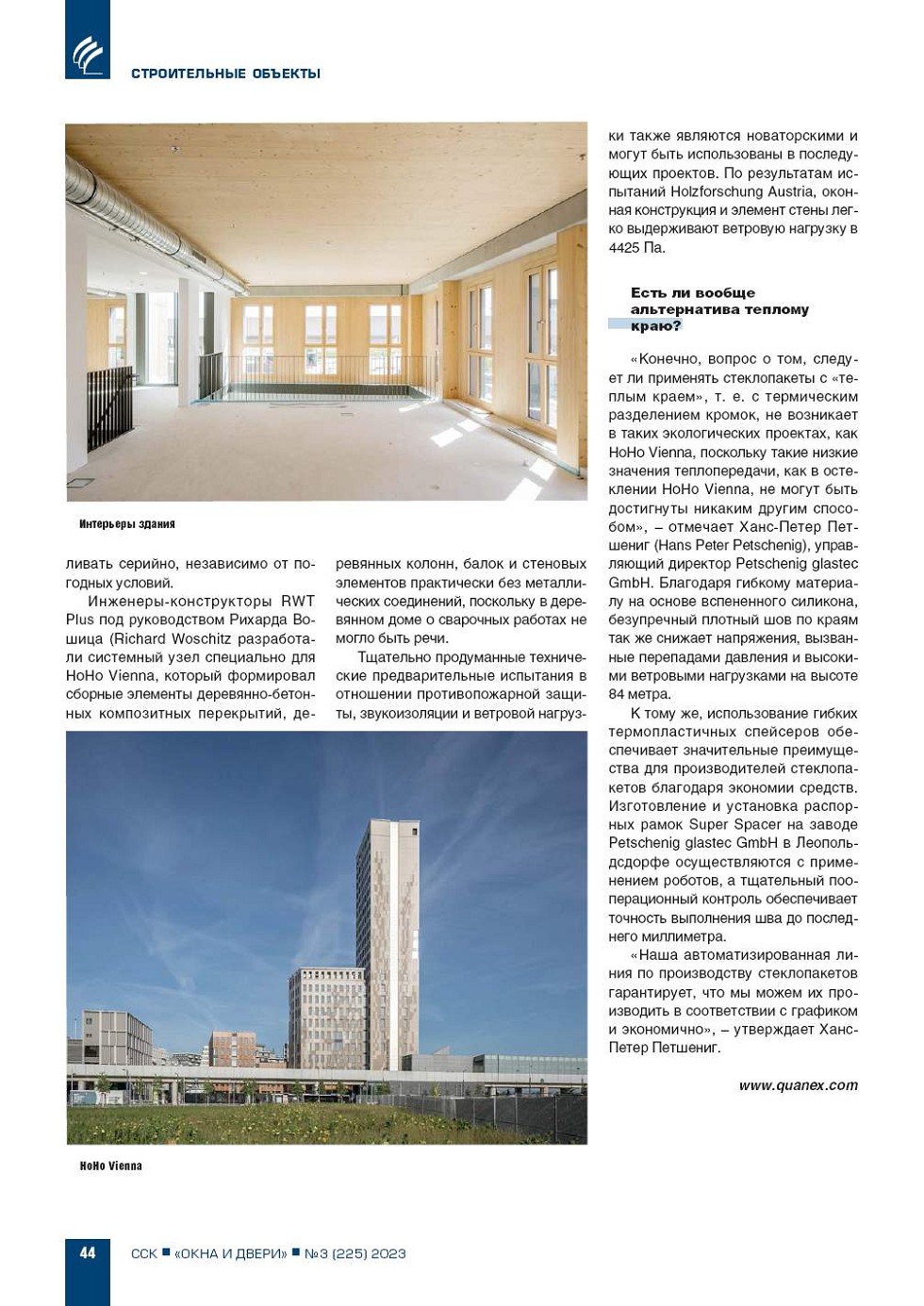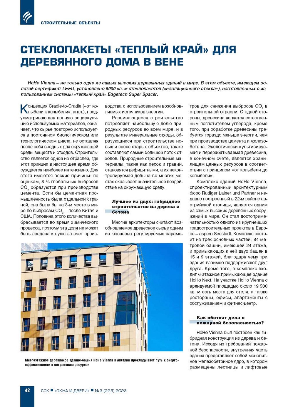 HoHo Vienna – не только одно из самых высоких деревянных зданий в мире. В этом объекте, имеющем золотой сертификат LEED, установлено 6000 кв. м стеклопакетов («изоляционного стекла»), изготовленных с использованием системы «теплый край» Edgetech Super... |