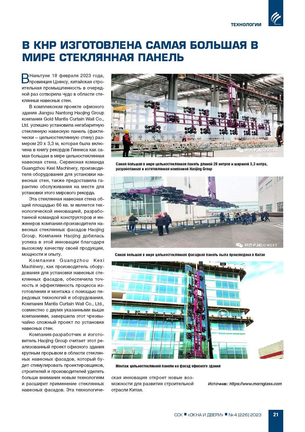 В Наньтуне 18 февраля 2023 года, провинция Цзянсу, китайская строительная промышленность в очередной раз сотворила чудо в области стеклянных навесных стен. В комплексном проекте офисного здания Jiangsu Nantong Haojing Group компания Gold Mantis Curtain... |
