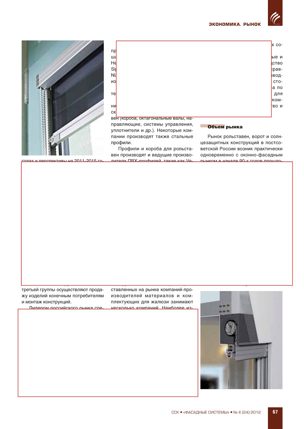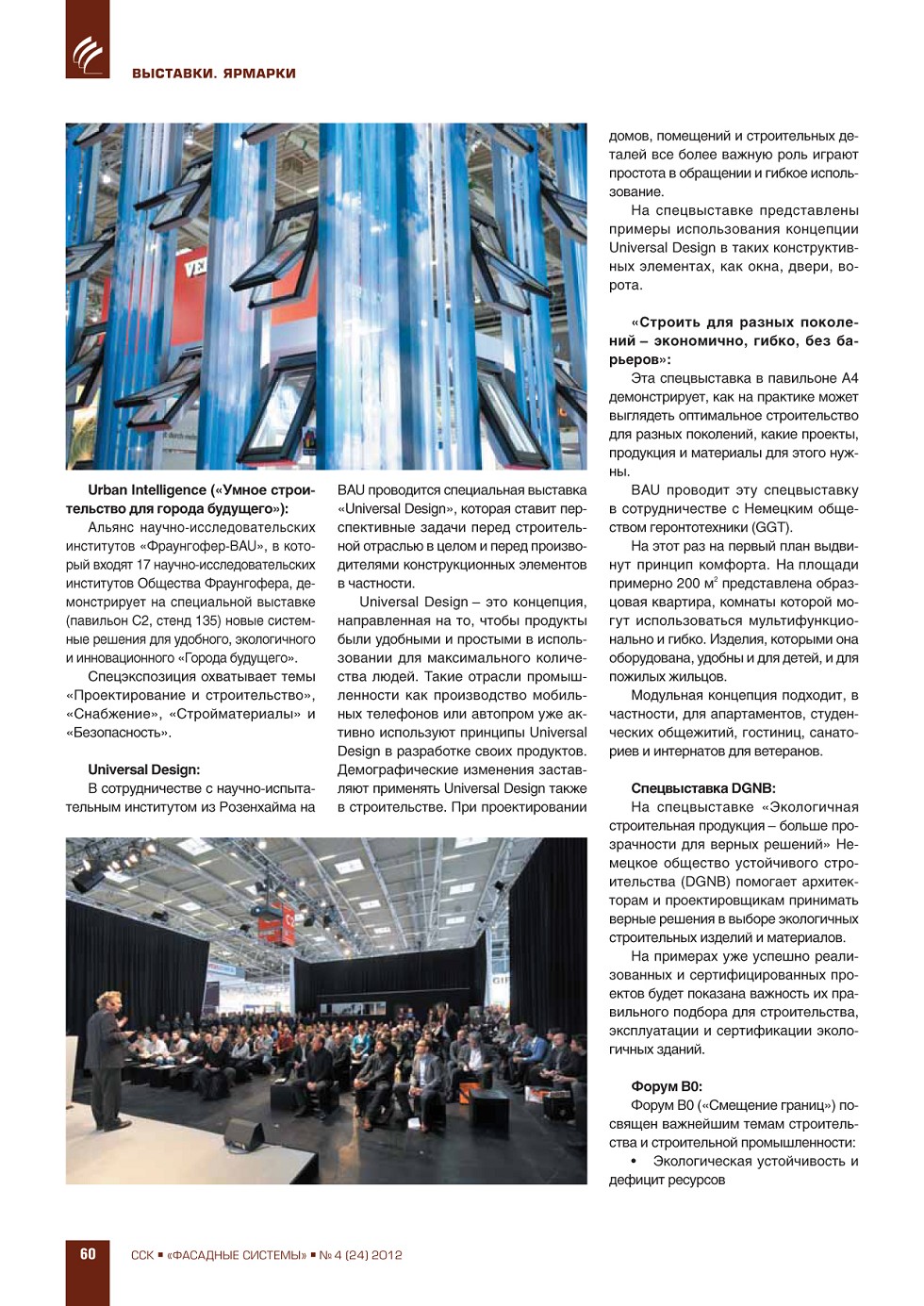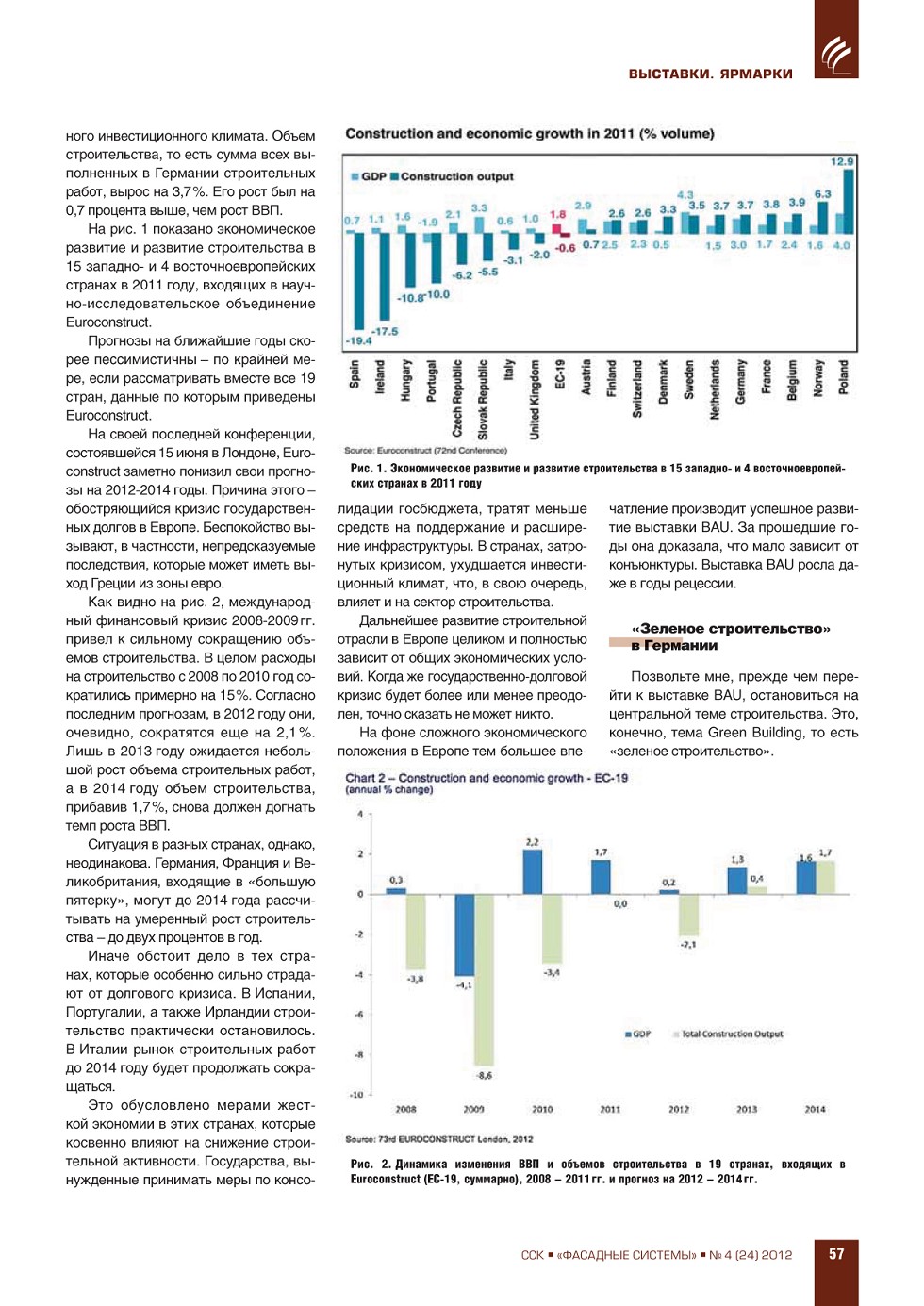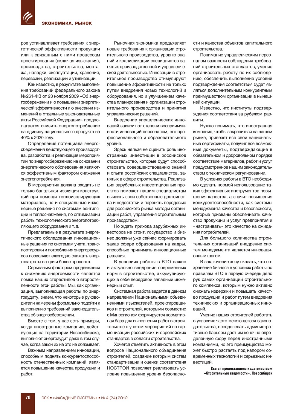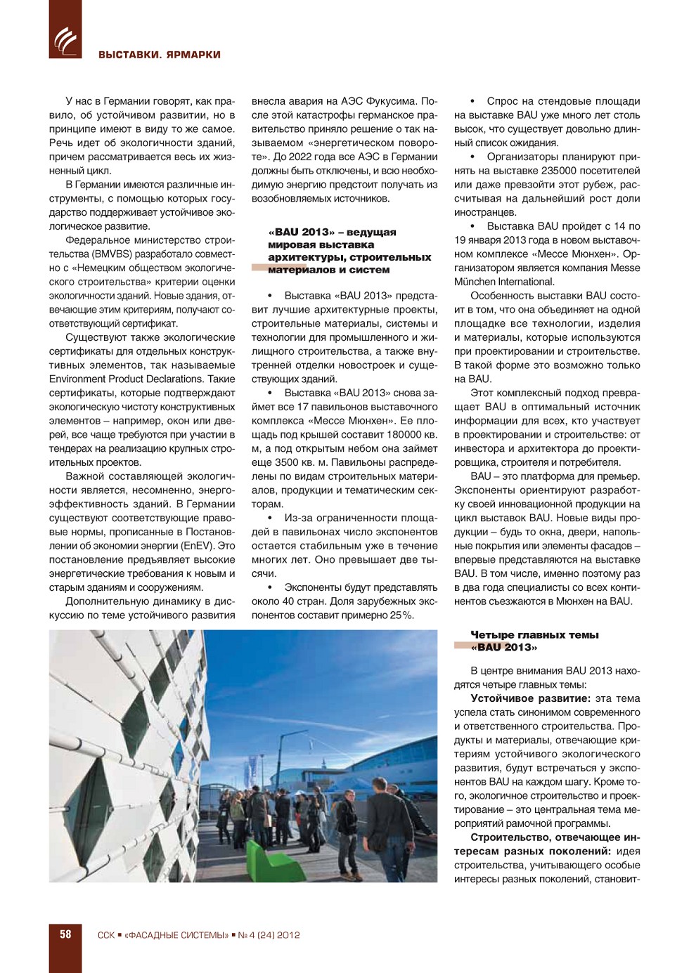 ФАСАДНЫЕ СИСТЕМЫИздается с 2006 г.ПодпискаГрафик выходаСвежий номерАрхивРубрики ЖУРНАЛ ФАСАДНЫЕ СИСТЕМЫ 4 (24), 2012 ССК-Информ » Фасадные системы ВЫПУСК «4 (24)», 2012 СОДЕРЖАНИЕ ВЫСТАВКИ. ЯРМАРКИ Презентация выставки «BAU 2013» в Москве ...56 ЭКОНОМИКА. РЫНОК Н.Л. Гаврилов-Кремичев, И.Л. Николаева. Рынок рольставен, ворот и солнцезащитных конструкций в России ...63 А.С. Ушаков. Инновации – как инструмент повышения конкурентоспособности в строительной отрасли ...69 ПРЕВЬЮ ЖУРНАЛА