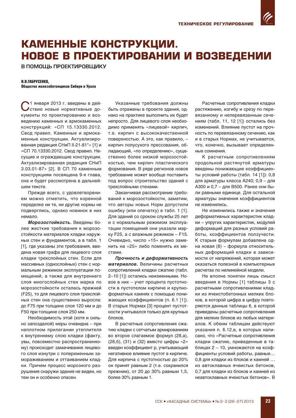 | В.В.Габрусенко (ОЖСУ). Каменные конструкции. Новое в проектировании и возведении. В помощь проектировщику | ...23 |
