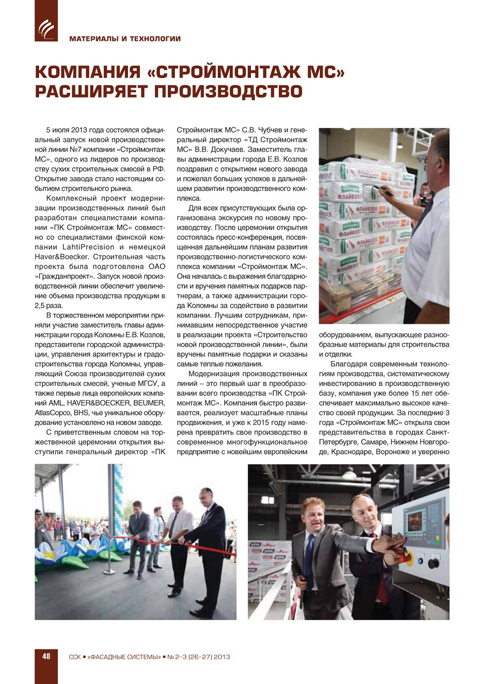 | Компания «Строймонтаж МС» расширяет производство | ...48 |
