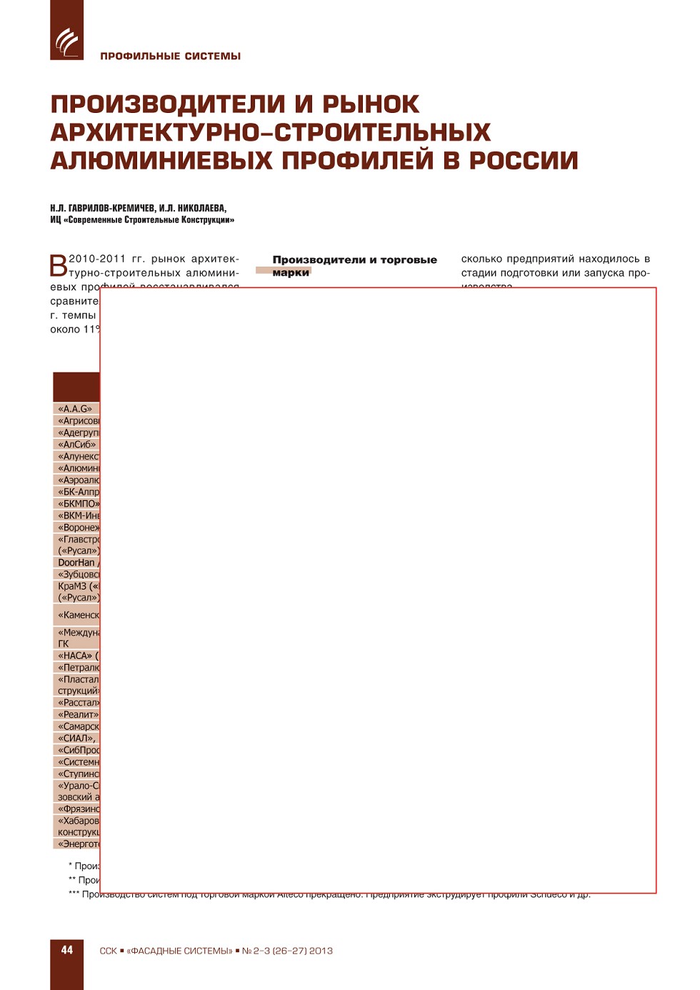 | Производители и рынок архитектурно-строительных алюминиевых профилей в России | ...44 |