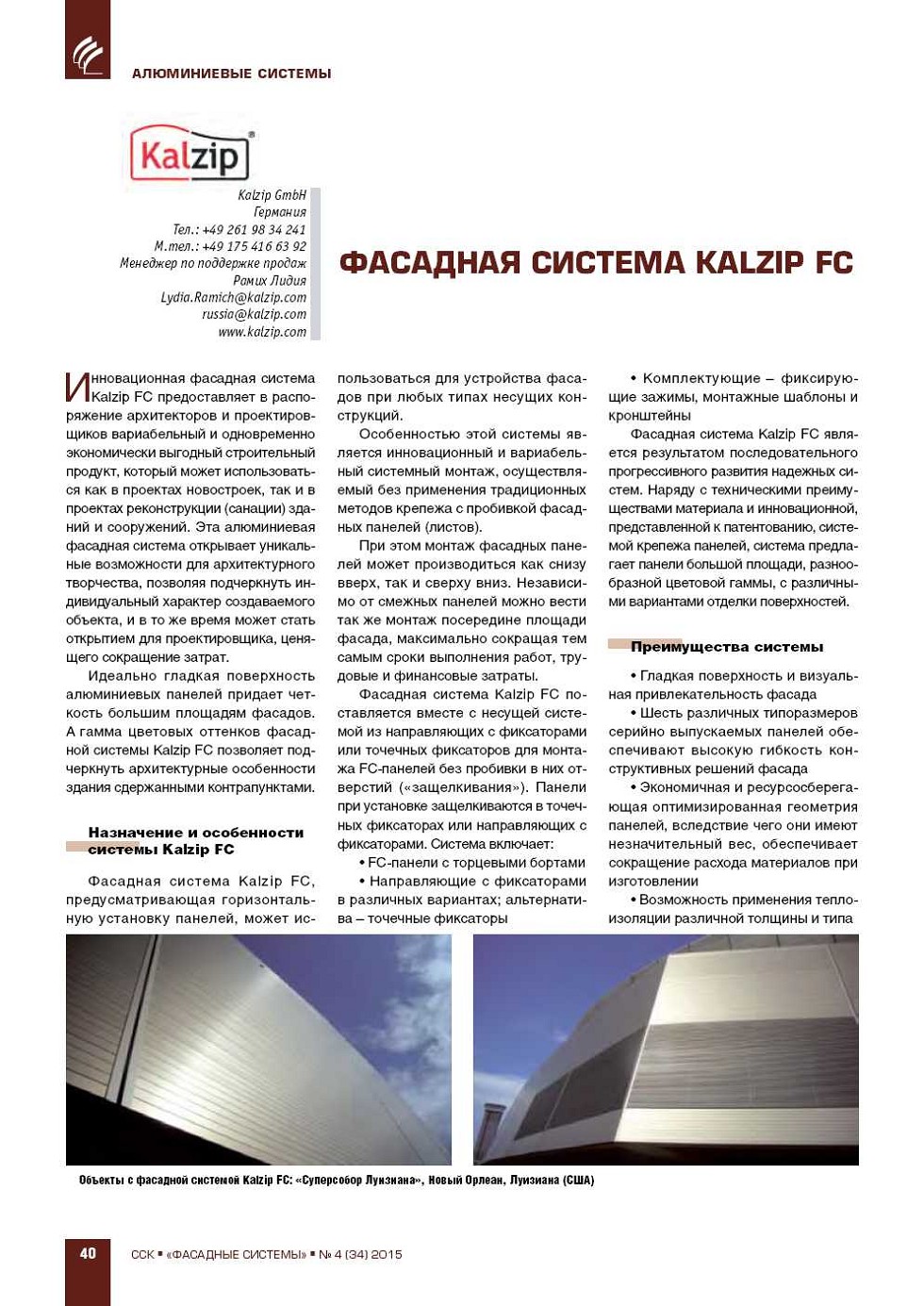 ЖУРНАЛ ФАСАДНЫЕ СИСТЕМЫ 4 (34), 2015