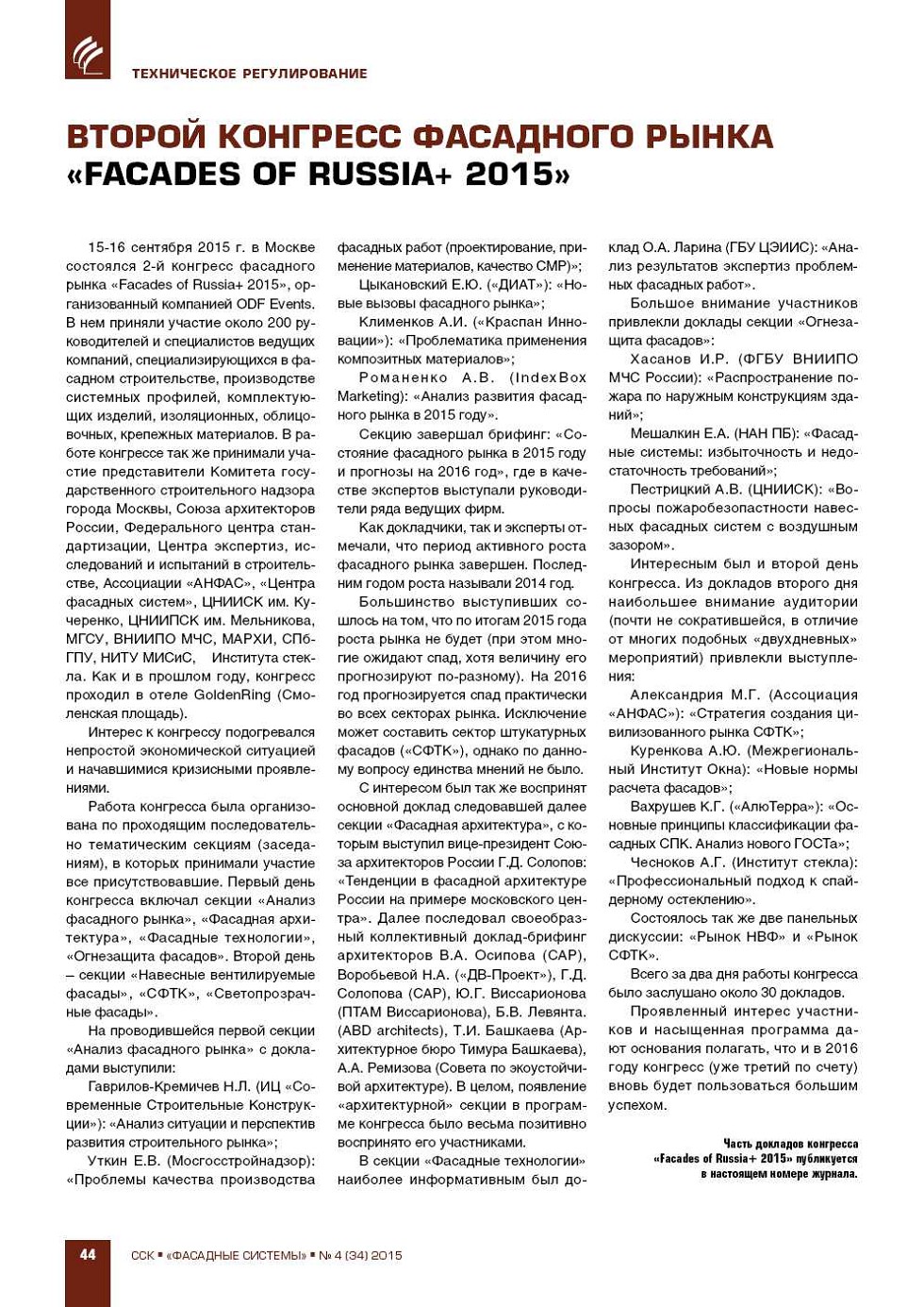 | Второй конгресс фасадного рынка «Facades of Russia+ 2015» | ...44 |
