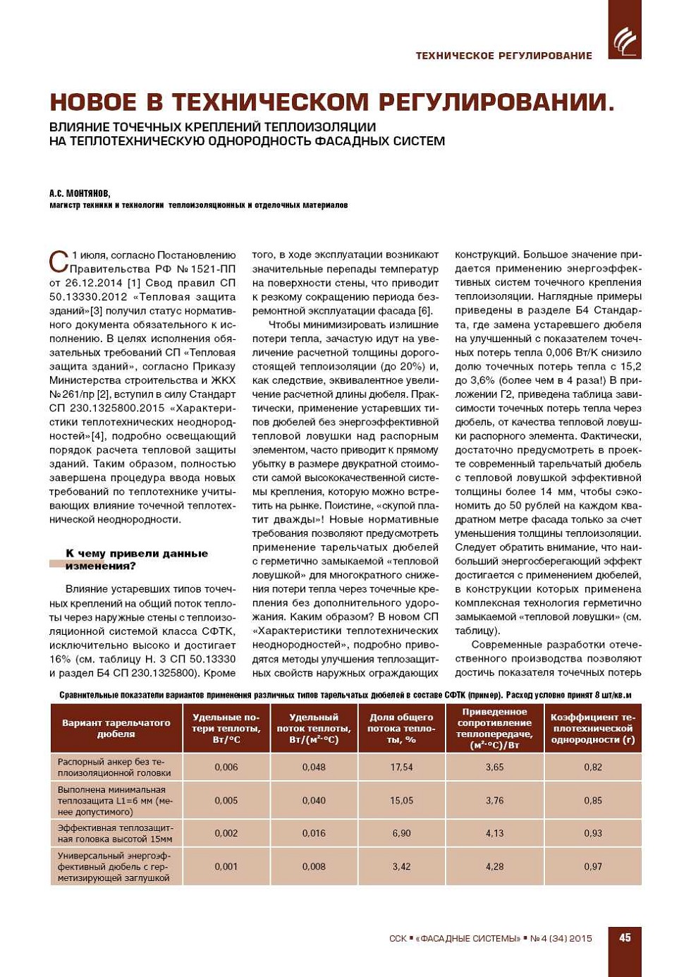 | А.С. Монтянов. Новое в техническом регулировании. Влияние точечных креплений теплоизоляции на теплотехническ ую однородность фасадных систем | ...45 |