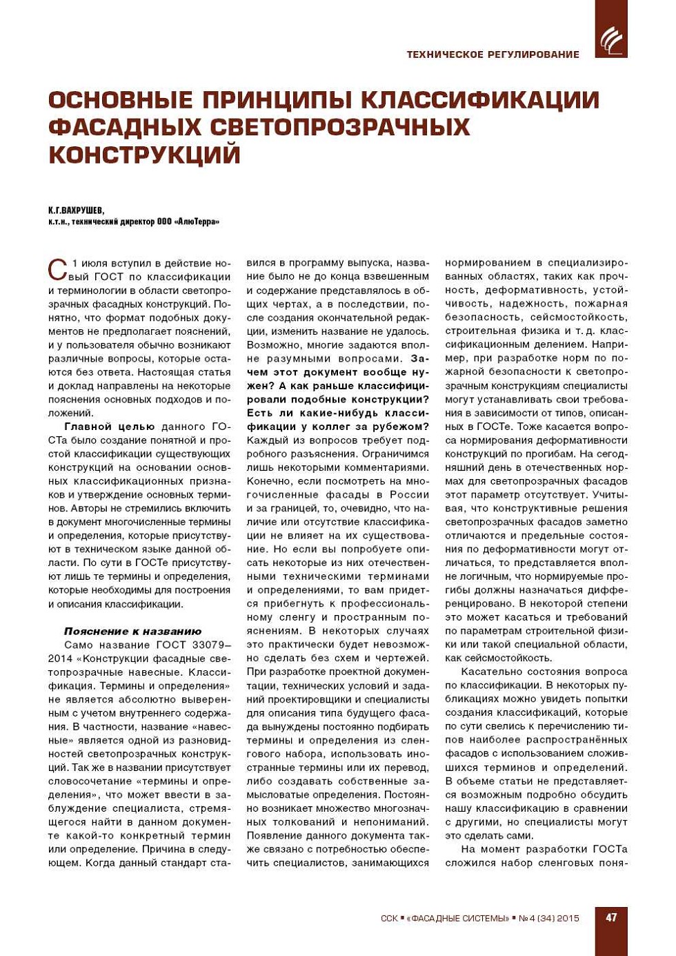 | К.Г. Вахрушев («АлюТерра»). Основные принципы классификации фасадных светопрозрачных конструкций | ...47 |