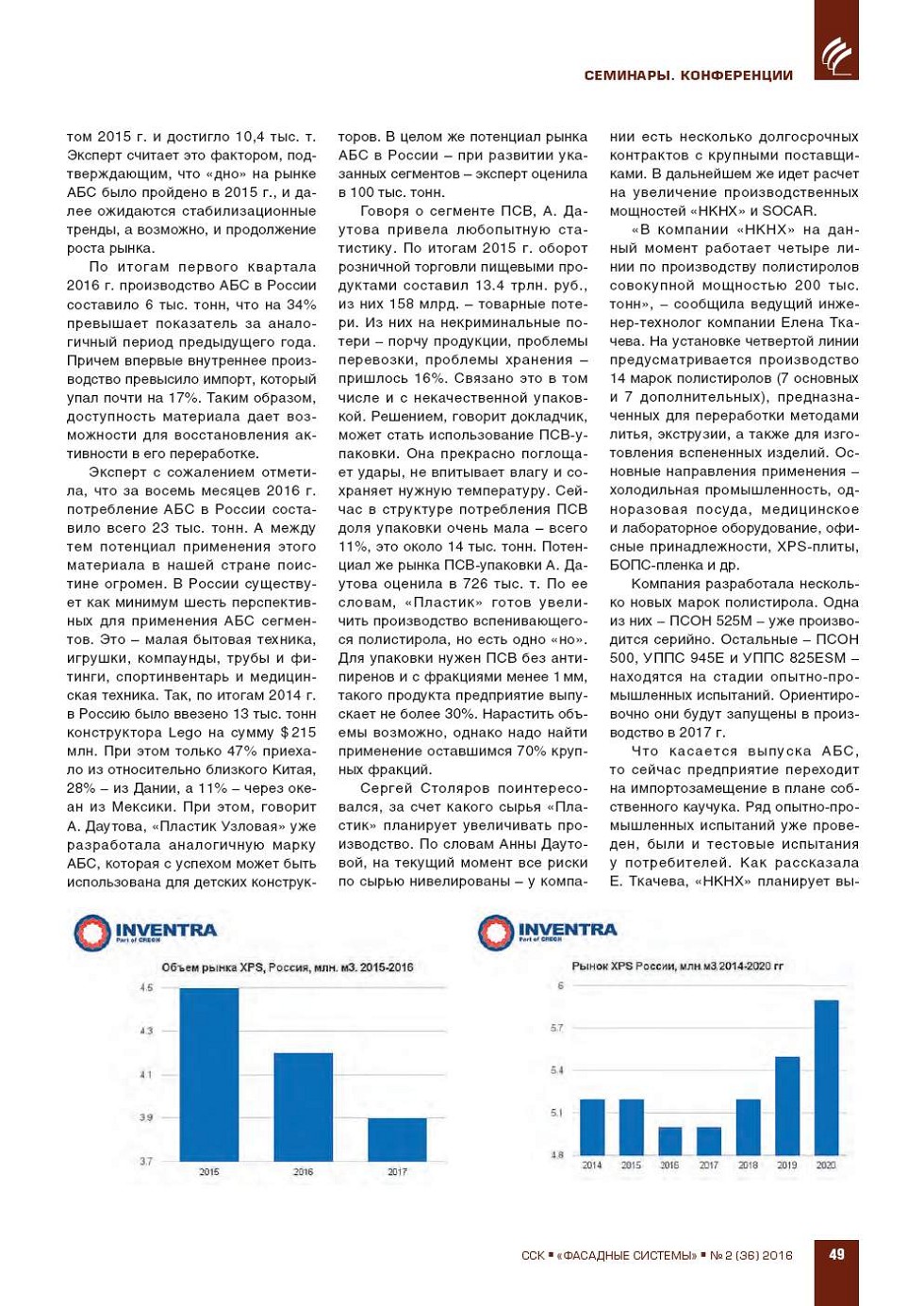 Тринадцатая международная конференция «Полистирол, АБС и вспененные полимеры 2016», организованная компанией Inventra, состоялась в Москве (отель «Балчуг Кемпински») 27 сентября. Партнером мероприятия стала компания «Пластик Узловая», информационным спонсором... |