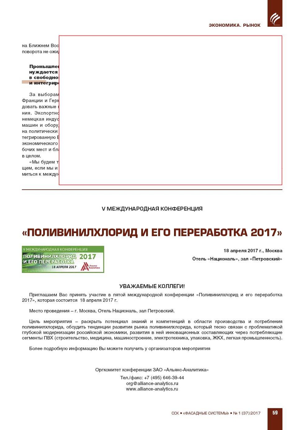 УВАЖАЕМЫЕ КОЛЛЕГИ! Приглашаем Вас принять участие в пятой международной конференции «Поливинилхлорид и его переработка 2017», которая состоится 18 апреля 2017 г. Место проведения – г. Москва, Отель Националь, зал Петровский. Цель мероприятия – раскрыть... |