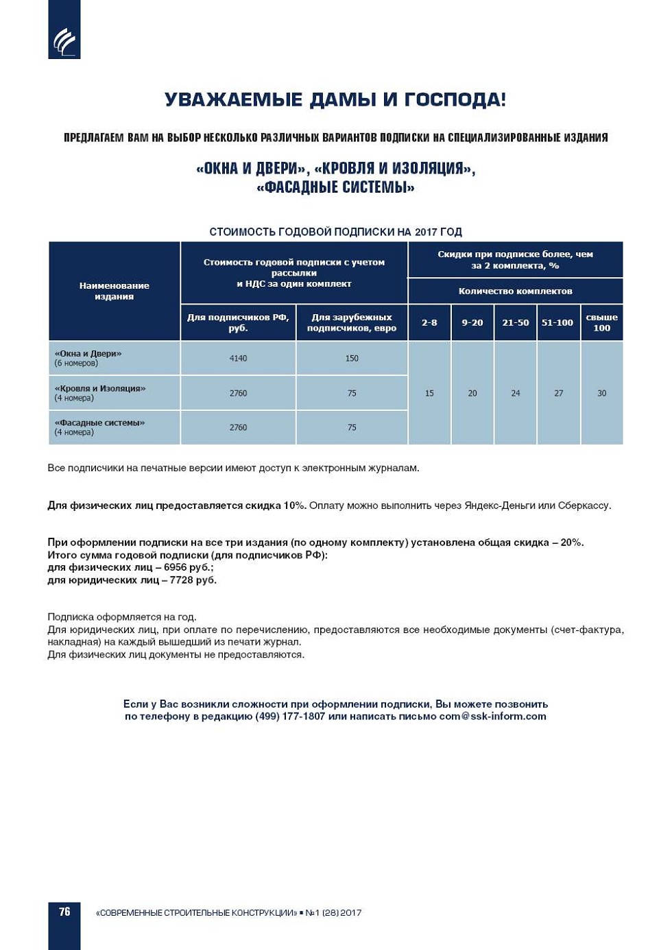 ЖУРНАЛ ФАСАДНЫЕ СИСТЕМЫ 1 (37), 2017