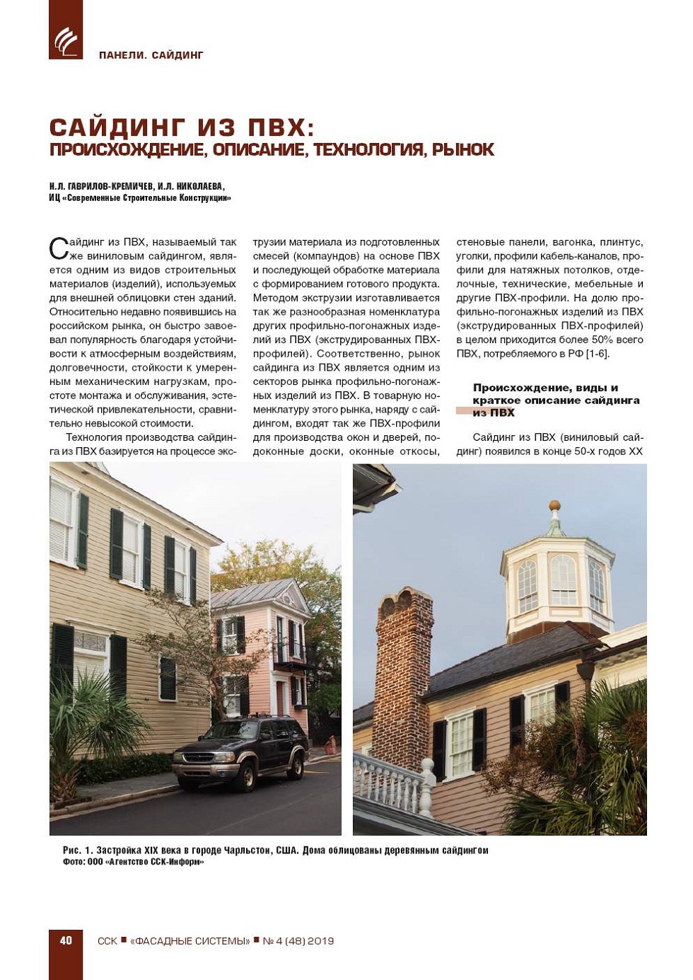 Н.Л. Гаврилов-Кремичев, И.Л. Николаева (ИЦ «ССК»). Сайдинг из ПВХ: происхождение, описание, технология, рынок