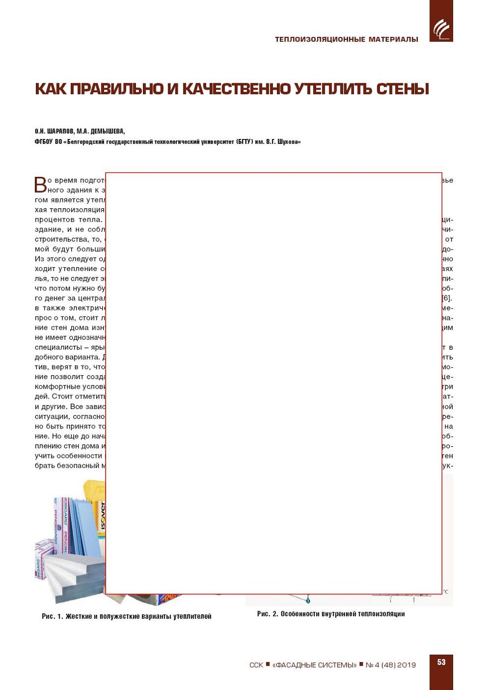 О.Н. Шарапов, М.А. Демышева, ФГБОУ ВО «Белгородский государственный технологический университет (БГТУ) им. В.Г. Шухова» Как правильно и качественно утеплить стены