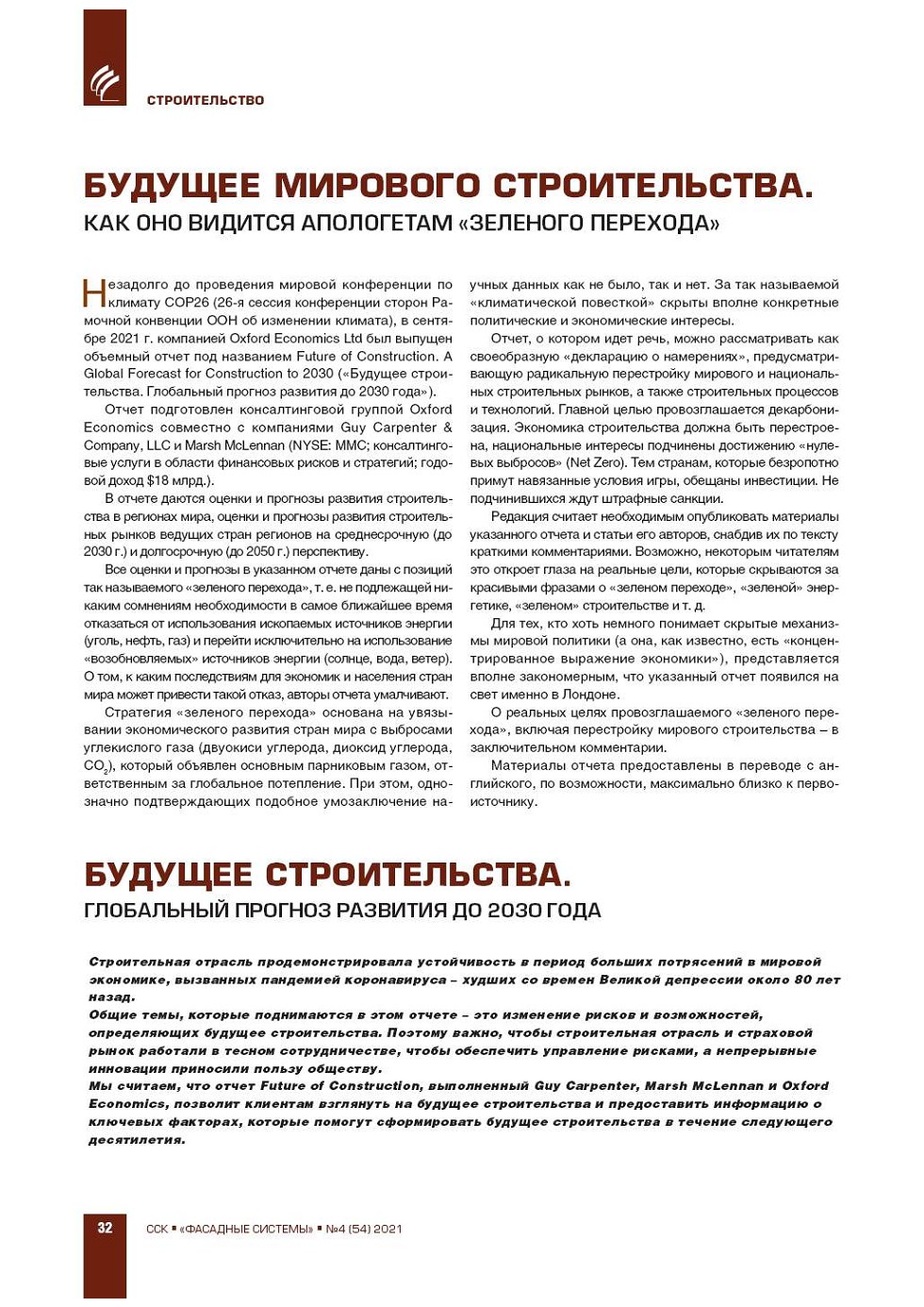 ЖУРНАЛ ФАСАДНЫЕ СИСТЕМЫ 4 (54), 2021