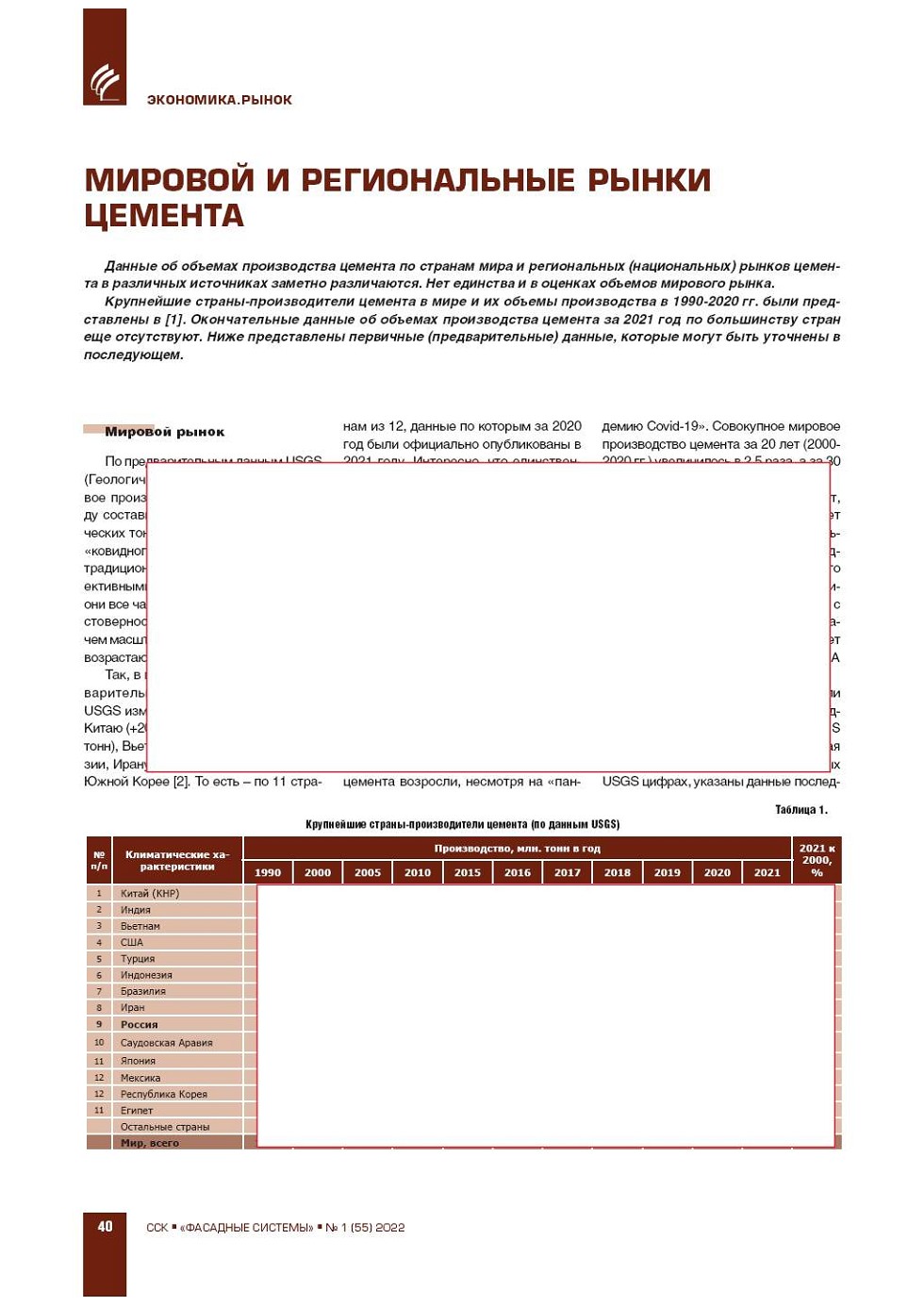 Данные об объемах производства цемента по странам мира и региональных (национальных) рынков цемента в различных источниках заметно различаются. Нет единства и в оценках объемов мирового рынка. Крупнейшие страныпроизводители цемента в мире и их объемы... |
