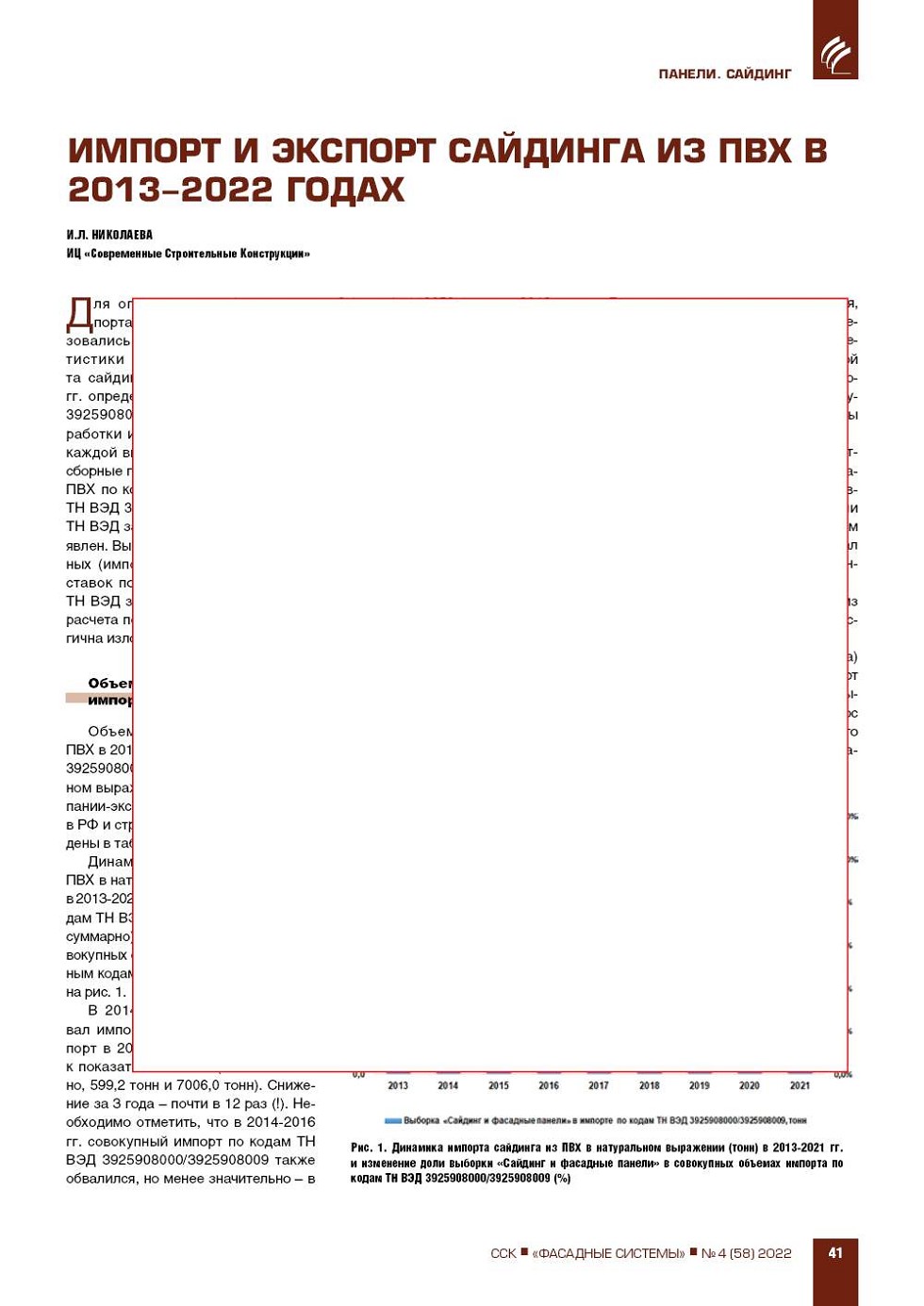 Импорт и экспорт сайдинга из ПВХ в 2013-2022 годах