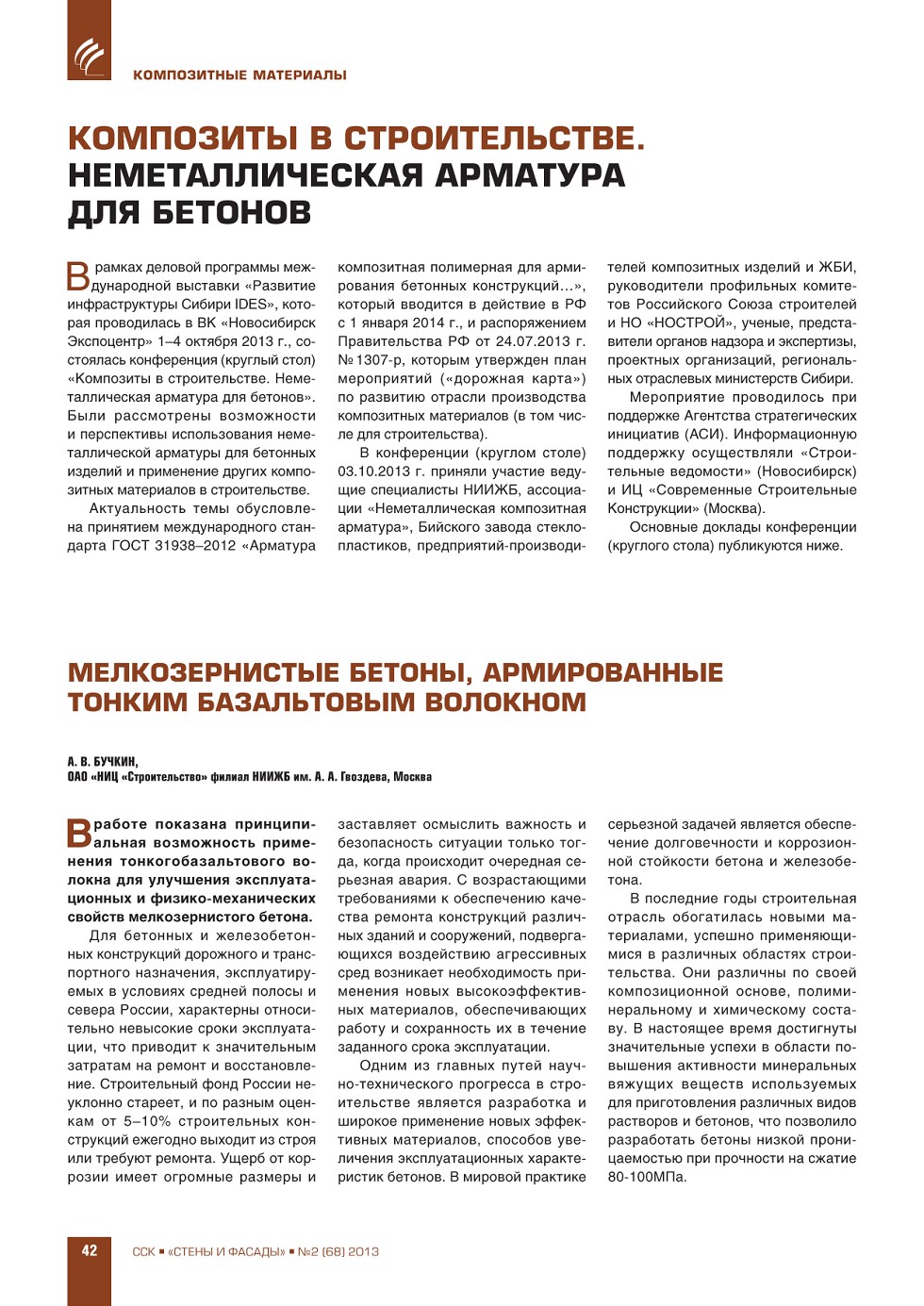 А.В.Бучкин (ОАО «НИЦ «Строительство»). Мелкозернистые бетоны, армированные базальтовым волокном