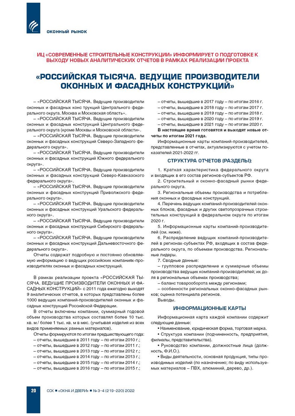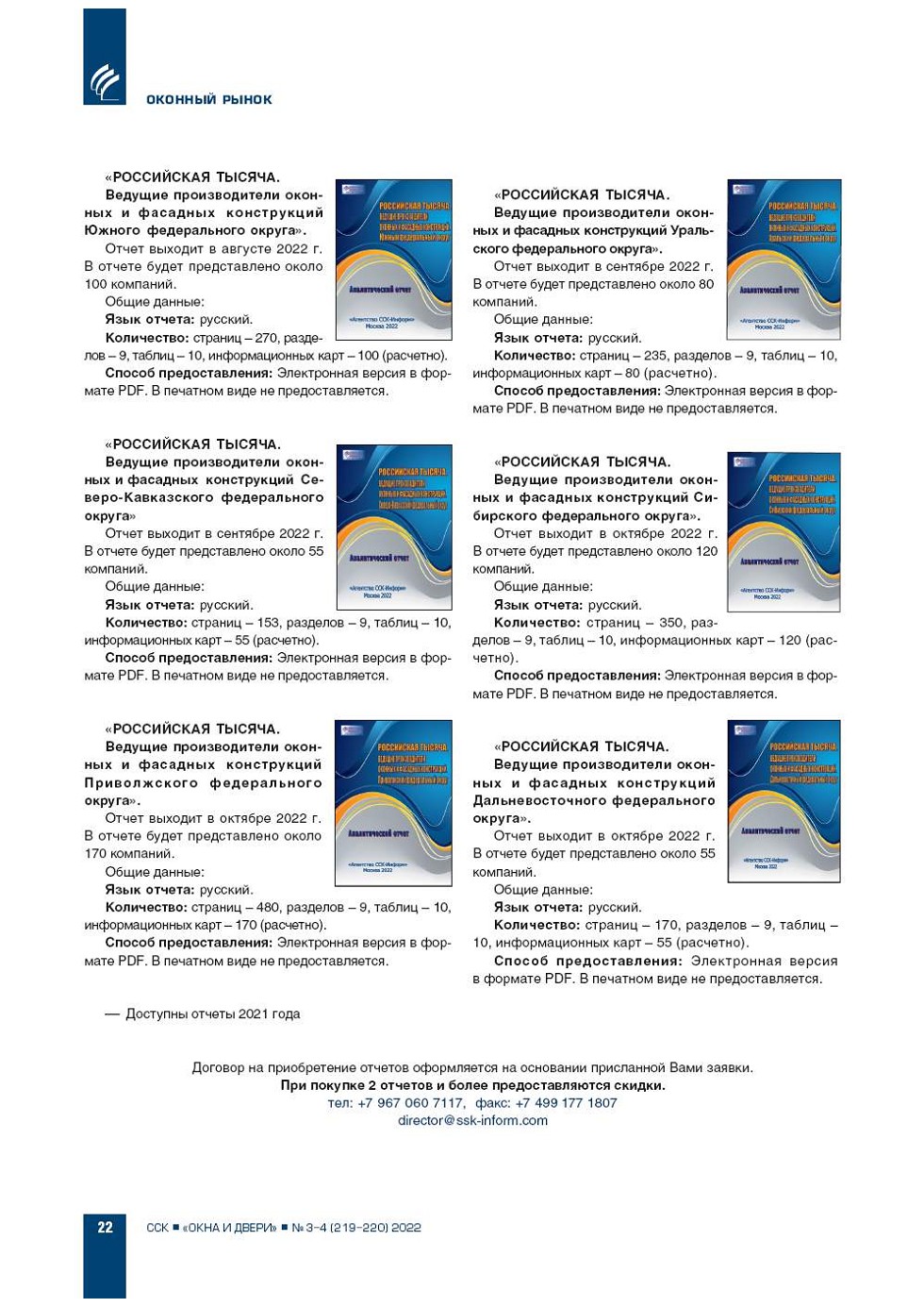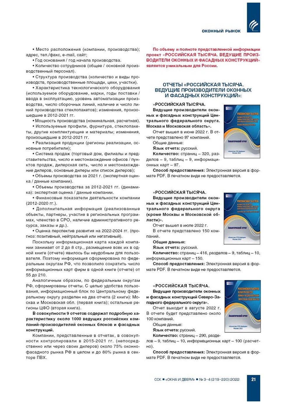 ПРЕВЬЮ ЖУРНАЛА СКАН СТР. ССК-Информ » Журнал Окна и Двери » ПРЕВЬЮ » Номер 3-4 (219-220), 2022 ПРЕВЬЮ просмотр PDF-версии в JPG-формате Журнал Окна и Двери Подписка на печатные и электронные версии online просмотр