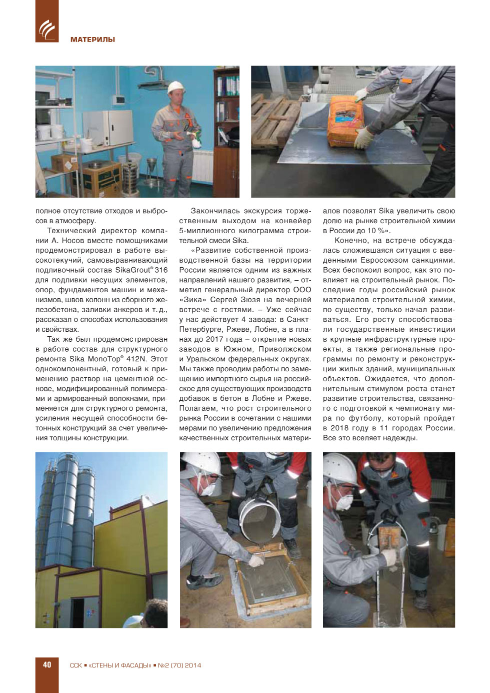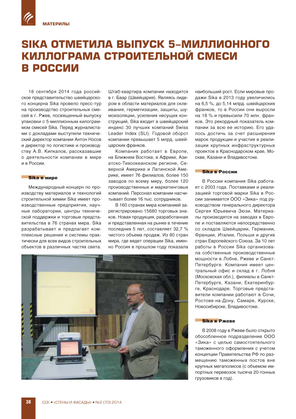 | Sika отметила выпуск 5-миллионного килограмма строительной смеси в России | ...38 |