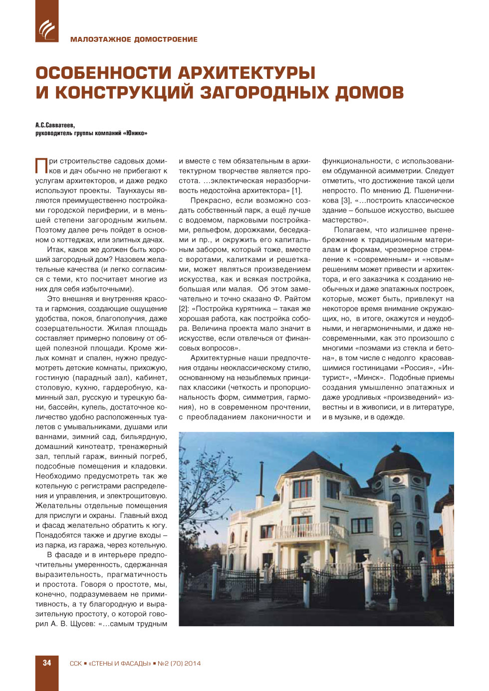 | А.С.Савватеев («Юникон»). Особенности архитектуры и конструкций загородных домов | ...34 |